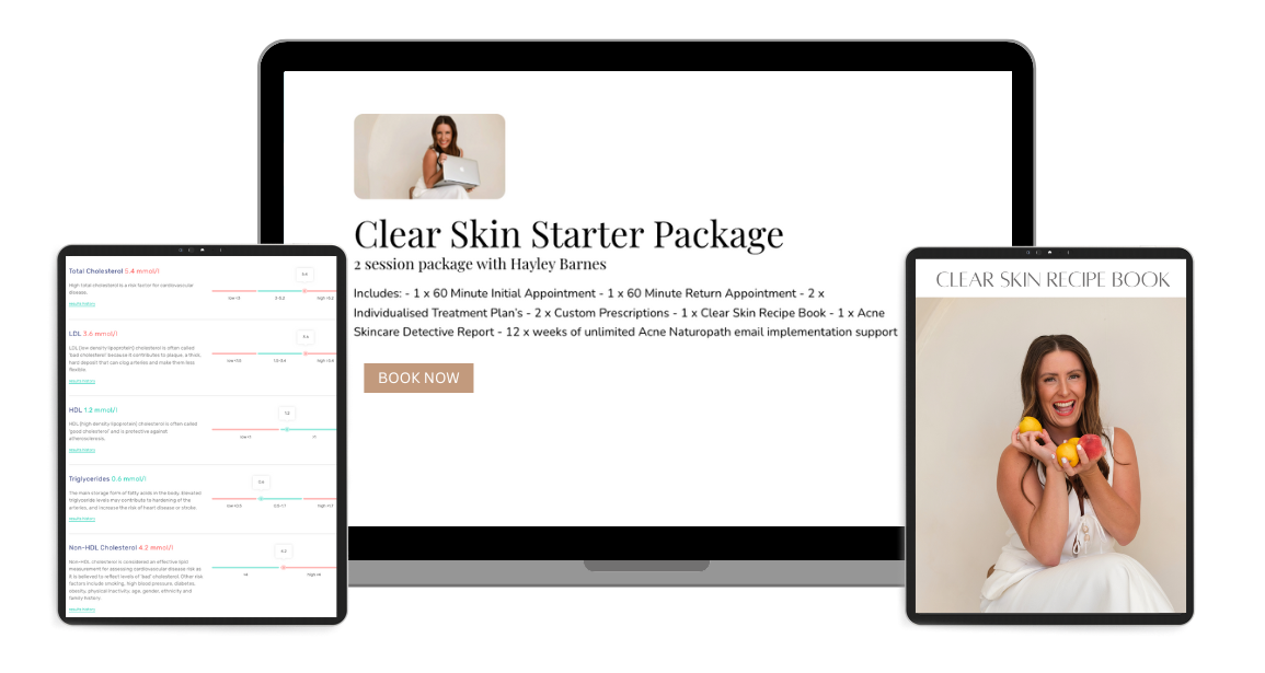 Hayley’s intense ten (10) year personal acne journey, inspired Hayley to take matters into her own hands and study to become a double degree qualified Acne Naturopath, finally treating the root cause of her acne and now hundreds of her client's acne. Hayley’s immense passion for education is the basis of her practice. Hayley achieves life changing results for her clients, due to her evidence based practice, holistic approach to treating the internal root cause of acne. Hayley interprets acne as a clinical sign representing a larger internal health challenge that needs to be addressed. Hayley interprets Acne as the bodies way of sending a ‘help signal’, alarming the client to address the root cause of their acne internally.